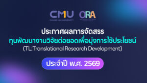 ประกาศผลการจัดสรรทุนพัฒนางานวิจัยต่อยอดเพื่อมุ่งการใช้ประโยชน์ (TL:Translational Research Development) ประจำปี พ.ศ. 2569 03/02/2569 ดูเพิ่มเติม >