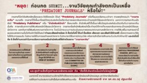 หยุด! ก่อนกด Submit… งานวิจัยคุณกำลังตกเป็นเหยื่อ “Predatory Journals” หรือไม่? 18/03/2569 ดูเพิ่มเติม >