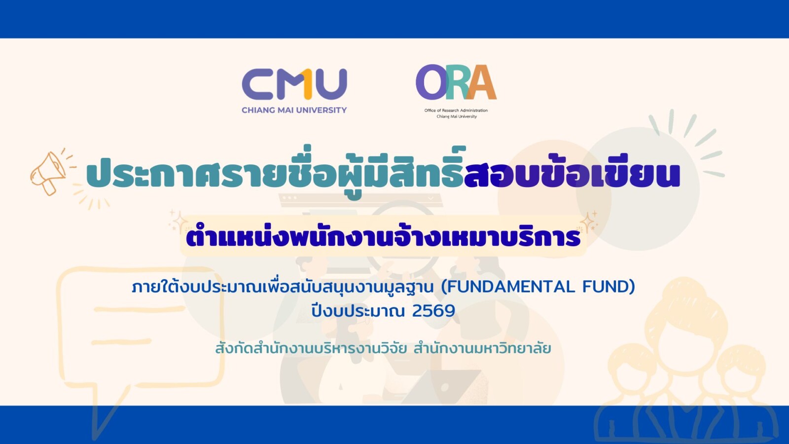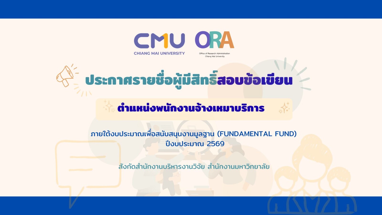 เรื่อง รายชื่อผู้มีสิทธิ์สอบข้อเขียนพนักงานจ้างเหมาบริการ สังกัด สำนักงานบริหารงานวิจัย