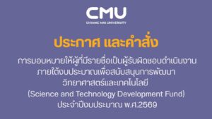 ประกาศ คำสั่งการมอบหมายให้ผู้ที่มีรายชื่อเป็นผู้รับผิดชอบดำเนินงานภายใต้งบประมาณเพื่อสนับสนุนการพัฒนาวิทยาศาสตร์และเทคโนโลยี (Science and Technology Development Fund) ประจำปีงบประมาณ พ.ศ.2569 02/10/2568