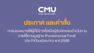 ประกาศ คำสั่งการมอบหมายให้ผู้ที่มีรายชื่อเป็นผู้รับผิดชอบดำเนินงานภายใต้งานมูลฐาน (Fundamental Fund) ประจำปีงบประมาณ พ.ศ.2569 02/10/2568