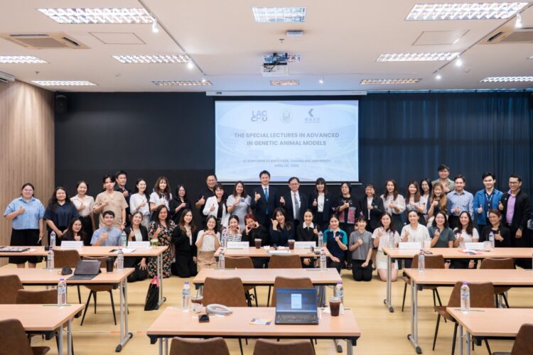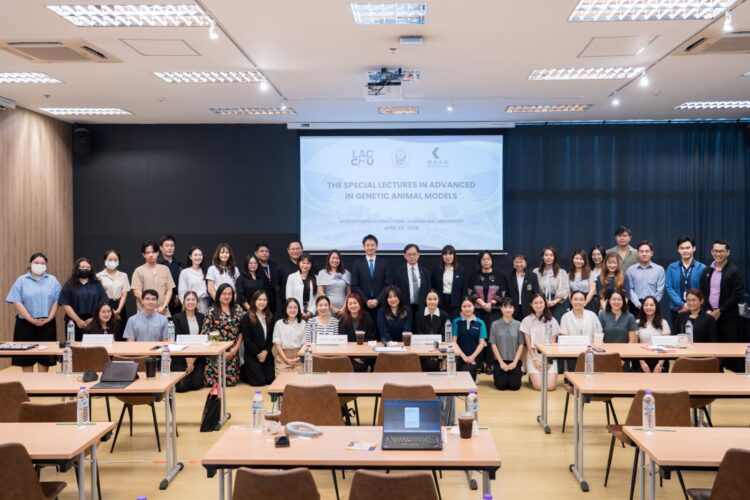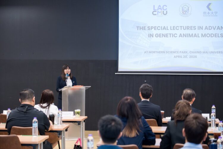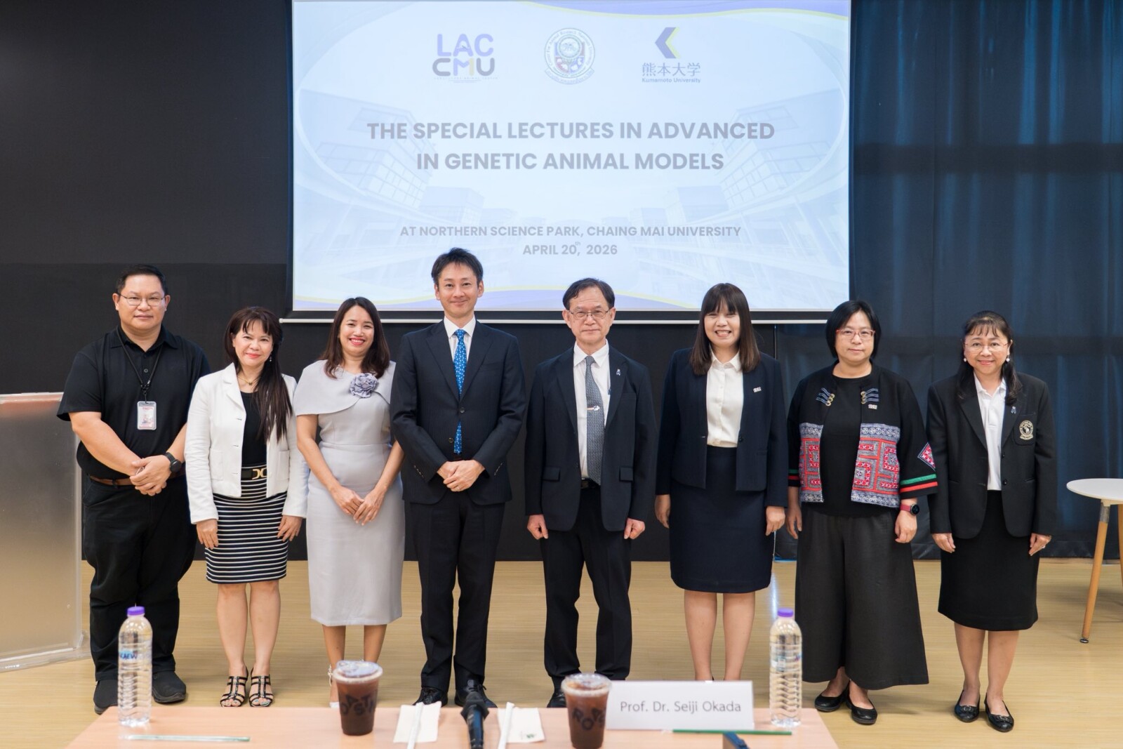 รองศาสตราจารย์ ดร.วินิตา บุณโยดม รองอธิการบดีมหาวิทยาลัยเชียงใหม่ ประธานเปิดโครงการและกล่าวต้อนรับ Prof. Seiji Okada และ Prof. Toru Takeo วิทยากรผู้ทรงคุณวุฒิระดับนานาชาติจาก Kumamoto University ประเทศญี่ปุ่น ในการบรรยายพิเศษให้ความรู้เกี่ยวกับการพัฒนาและการใช้ประโยชน์จากสัตว์ทดลองดัดแปลงพันธุกรรมในงานวิจัยทางชีวการแพทย์ พร้อมทั้งร่วมหารือความร่วมมือด้านงานวิจัยระหว่างสถาบัน โดยกิจกรรมจัดขึ้น ณ Exhibition Hall อาคารอำนวยการอุทยานวิทยาศาสตร์ภาคเหนือ (จังหวัดเชียงใหม่) มหาวิทยาลัยเชียงใหม่ (CMU STeP) ในวันจันทร์ที่ 20 เมษายน 2569