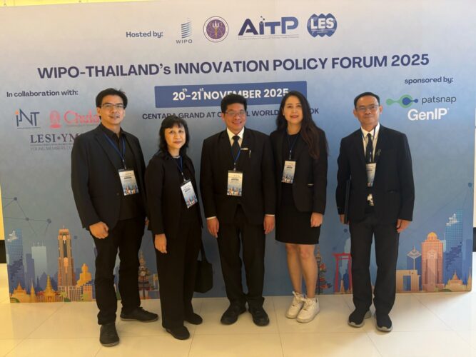 รองศาสตราจารย์ ดร.นพพล เล็กสวัสดิ์ ผู้ช่วยอธิการบดี มหาวิทยาลัยเชียงใหม่ และ ดร.สรรพวรรธ วิทยาศัย ผู้จัดการหน่วยจัดการทรัพย์สินทางปัญญาและถ่ายทอดเทคโนโลยี สำนักงานบริหารงานวิจัย เข้าร่วมงาน WIPO–Thailand’s Innovation Policy Forum 2025 ระหว่างวันที่ 20–21 พฤศจิกายน 2568 ณ Centara Grand Hotel ในฐานะสมาชิกผู้ก่อตั้ง สมาคมวิชาชีพนักจัดการทรัพย์สินทางปัญญาและถ่ายทอดเทคโนโลยี (AITP)