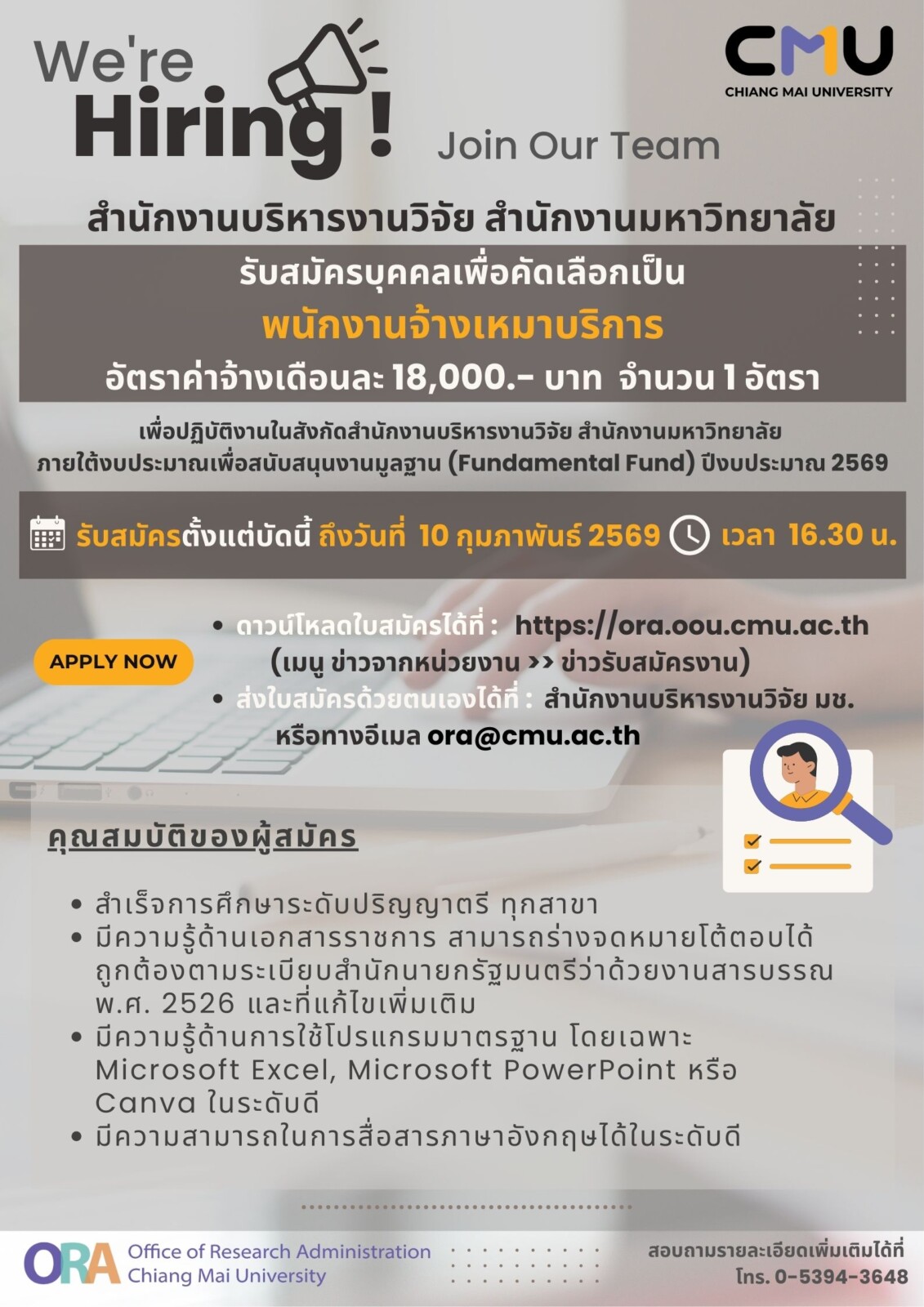 📌 เปิดรับสมัครตั้งแต่บัดนี้ถึงวันอังคารที่ 10 กุมภาพันธ์ 2569 (ปิดรับสมัครเวลา 16.30 น.)
