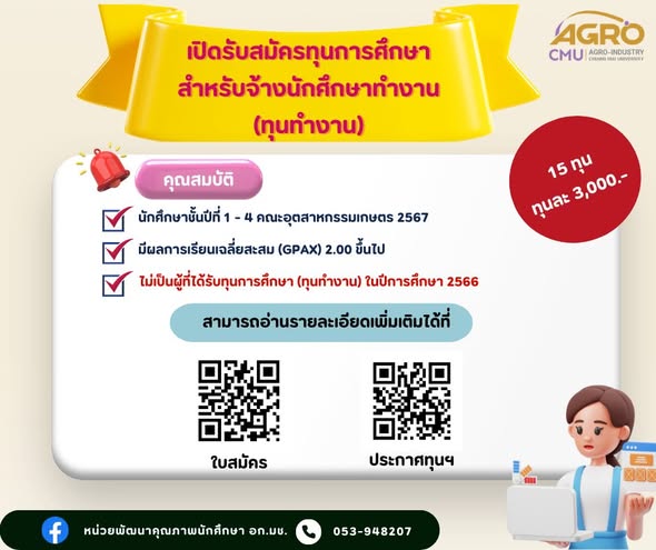 CMU provides employment opportunities for students during non-class hours, helping reduce economic burden while building work experience. The program pays 50 baht per hour, supporting livelihood needs and financial inclusion.