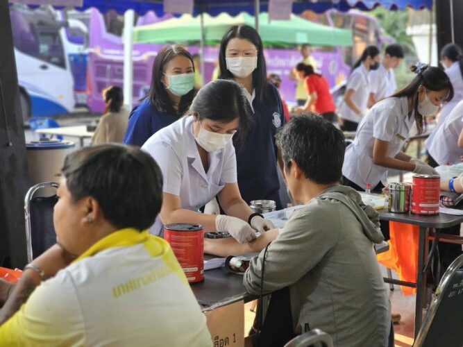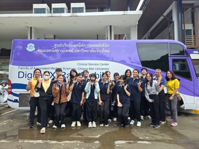 The Faculty of Associated Medical Sciences led nine community health outreach activities throughout the year, reaching populations with limited economic resources. On 17 February 2024, teams collaborated with San Pong Subdistrict Municipality in Mae Rim District, providing comprehensive health screenings including blood tests, chest X-rays, consultations for back and waist pain, dementia screening, mental health assessments, and speech therapy services. These free services removed financial barriers for poor families who otherwise struggle to afford preventive healthcare.