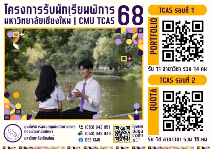 CMU operates structured monitoring mechanisms within the Thai University Central Admission System (TCAS), specifically through the Quota admission pathway for students with disabilities. The university collects and analyzes data on application rates, acceptance rates, and enrollment outcomes for disabled students, addressing physical impairments, sensory limitations, intellectual differences, and mental health conditions. This evidence-based approach aligns with the UN Convention on the Rights of Persons with Disabilities, recognizing that disability results from interactions between individual impairments and environmental barriers hindering full participation in society.