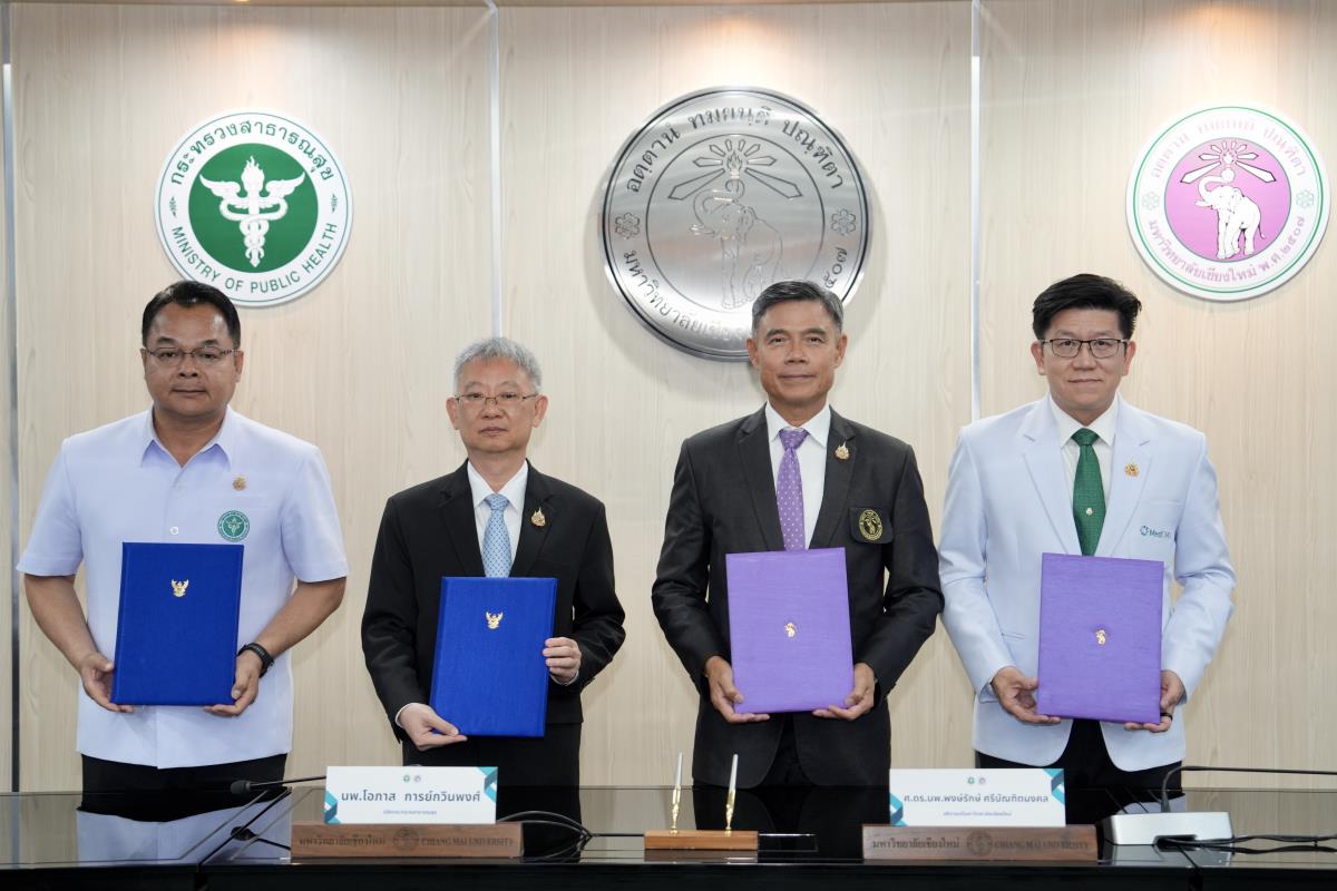 On August 5, 2025, Professor Dr. Pongruk Sribanditmongkol, President of Chiang Mai University (CMU), and Assist.Prof.Narain Chotirosniramit, Dean of the Faculty of Medicine, welcomed Dr. Opas Karnkawinpong, Permanent Secretary of the Ministry of Public Health, for signing a Memorandum of Understanding on “Linking Public Health Service Data on the Digital Health Platform and Data Sharing Agreement.” This government-university collaboration establishes systematic health data integration, enhancing diagnostic accuracy and treatment planning efficiency through effective cross-sectoral cooperation between national healthcare systems and academic medical institutions.