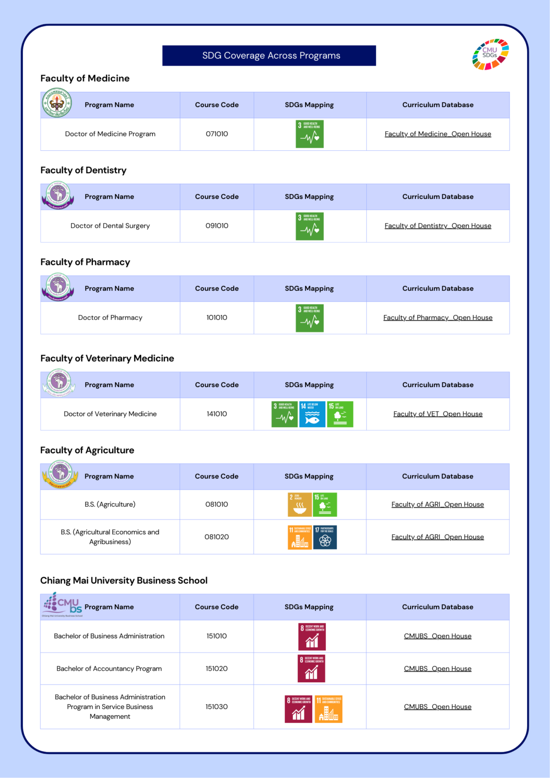 Chiang Mai University (CMU) demonstrates a strong institutional commitment to advancing the United Nations Sustainable Development Goals (SDGs) through the integration of sustainability concepts into its General Education (GE) curriculum. This approach not only promotes lifelong learning and social responsibility but also fulfills the THE Impact Rankings 2026 Metric 17.4.1, which evaluates the contribution of higher education institutions to achieving the SDGs through education and outreach.sdgs.cmu+2