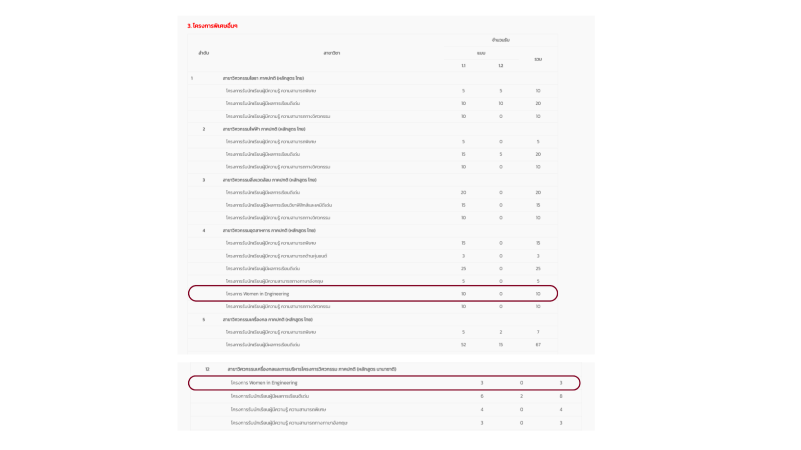 The expansion encompassed five additional programs through TCAS Round 1, creating new pathways for female students in: