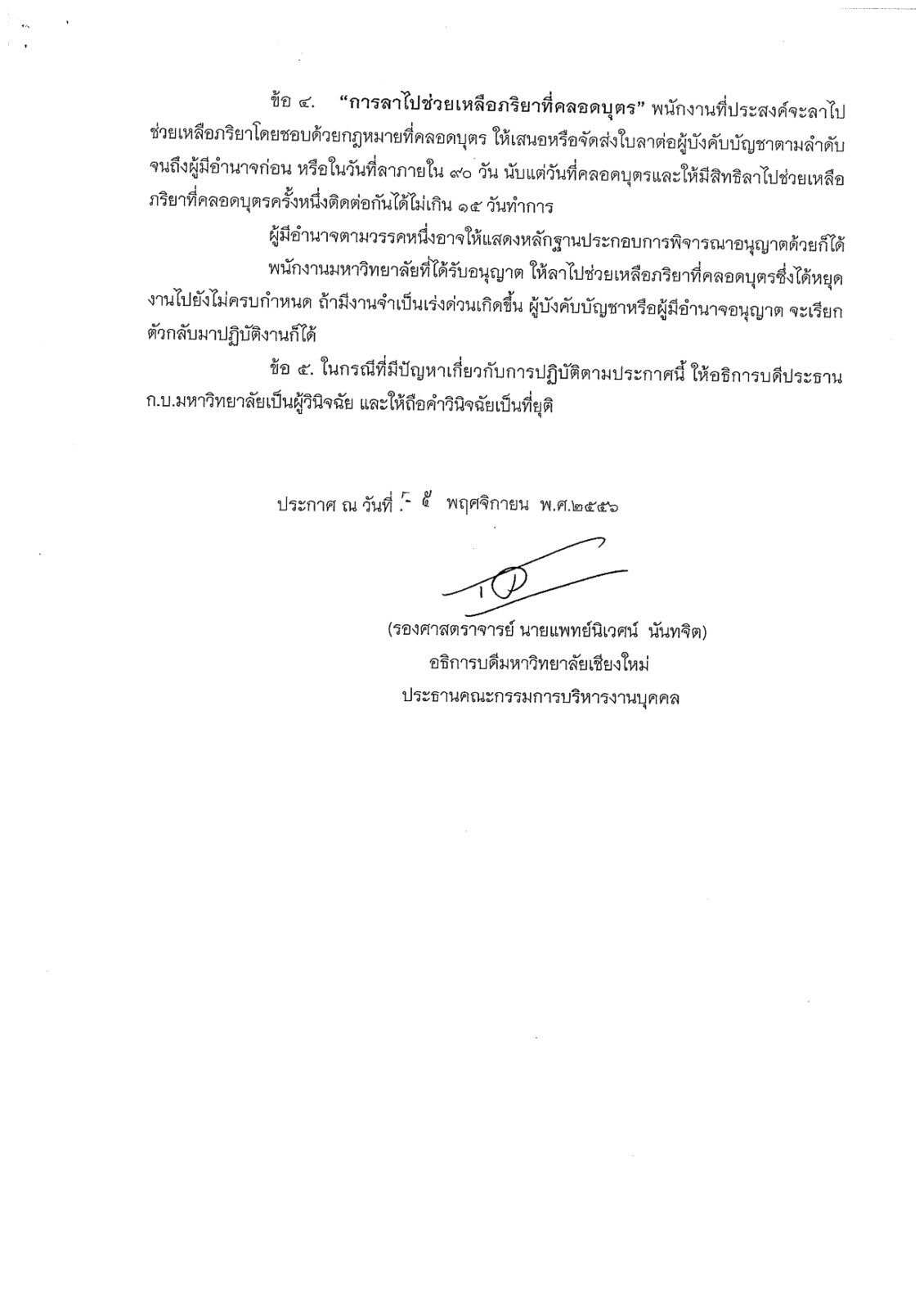 Chiang Mai University’s leave policy establishes robust support for working parents through detailed maternity and paternity provisions that promote gender equality in the workplace. These policies, established in 2009-2013 and reaffirmed through Amendment 4 in 2022, remain actively implemented today.