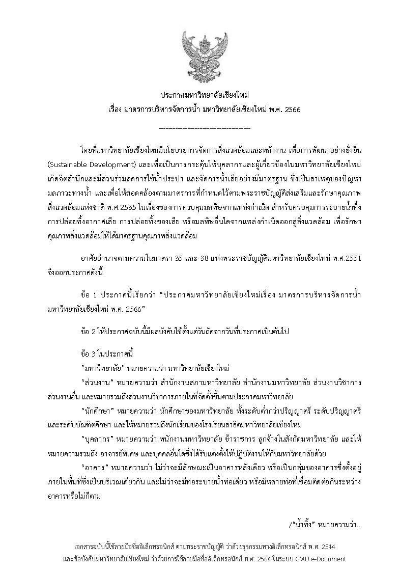 Chiang Mai University has established a robust water management policy (2023) that comprehensively addresses sustainable water and sanitation practices aligned with global sustainability standards. The policy demonstrates the university’s commitment to responsible water resource management through integrated approaches to treatment, conservation, and community engagement.