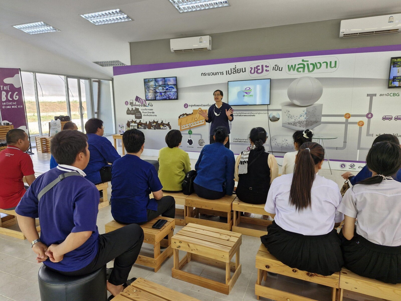 Rajamangala University of Technology Lanna’s Environmental Engineering faculty and students visited on January 23, 2024, learning about biogas production technology, renewable energy sources, and sustainable energy systems. San Kampaeng School teachers and students participated on July 2, 2024, in educational activities covering energy conservation, clean energy applications, and the importance of renewable energy in addressing climate change and global warming.