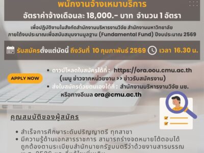 เปิดรับข้อเสนอทุนพัฒนากลุ่มวิจัย ศูนย์วิจัย และศูนย์ความเป็นเลิศ: โครงการต่อเนื่อง (กลุ่มที่ได้รับทุนในปี 2567 เท่านั้น)