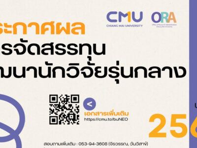E-book “คลังปัญญานักวิชาการมหาวิทยาลัยเชียงใหม่ ผู้มีผลงานเด่นและสร้างผลกระทบสูงทางวิชาการ” (Inventory of Knowledge Chiang Mai University Outstanding Researchers) 03/10/2568 ดูเพิ่มเติม »