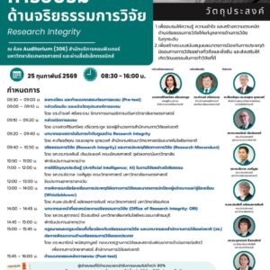 การอบรมด้านจริยธรรมการวิจัย (Research Integrity) ประชาสัมพันธ์การอบรมด้านจริยธรรมการวิจัย (Research Integrity) 🗓 วันที่ 25 กุมภาพันธ์ 2569 ⏰ เวลา 8.30-16.00 น. 🌐 ... 25 ก.พ. 08:30 - 16:00