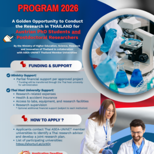 ทุนสนับสนุนวิจัยระยะสั้น Thailand–Austria Research Mobility Program 📢 ประชาสัมพันธ์ทุนสนับสนุนวิจัยระยะสั้น Thailand–Austria Research Mobility Program 🤝 สำนักงานปลัดกระทรวง อว. ดำเนินโครงการ Thailand–Austria ... 01 เม.ย. All Day