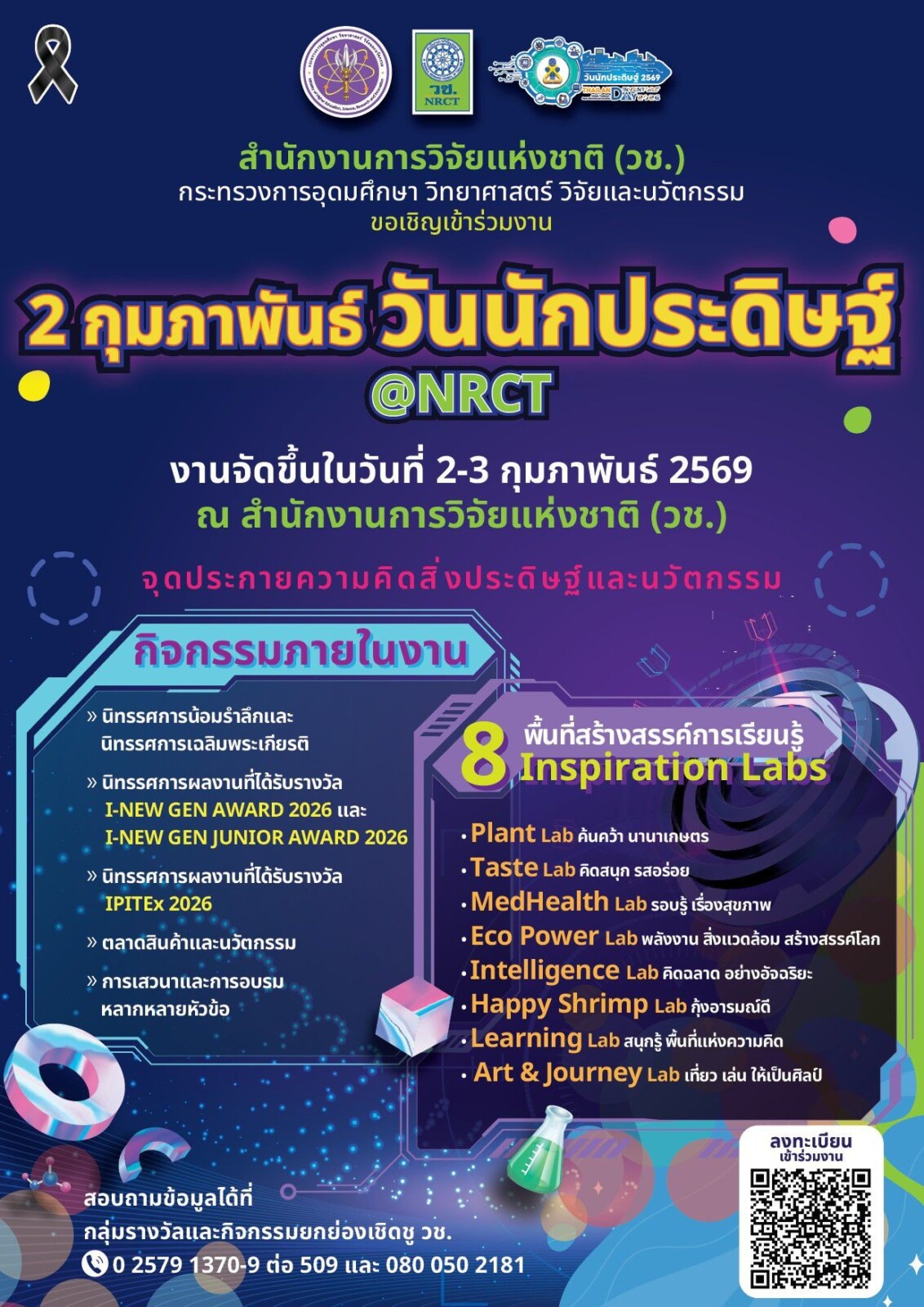 🚀 จุดประกายไอเดีย! ชวนร่วมงาน “2 กุมภาพันธ์ วันนักประดิษฐ์ @NRCT” | 2–3 ก.พ. 2569