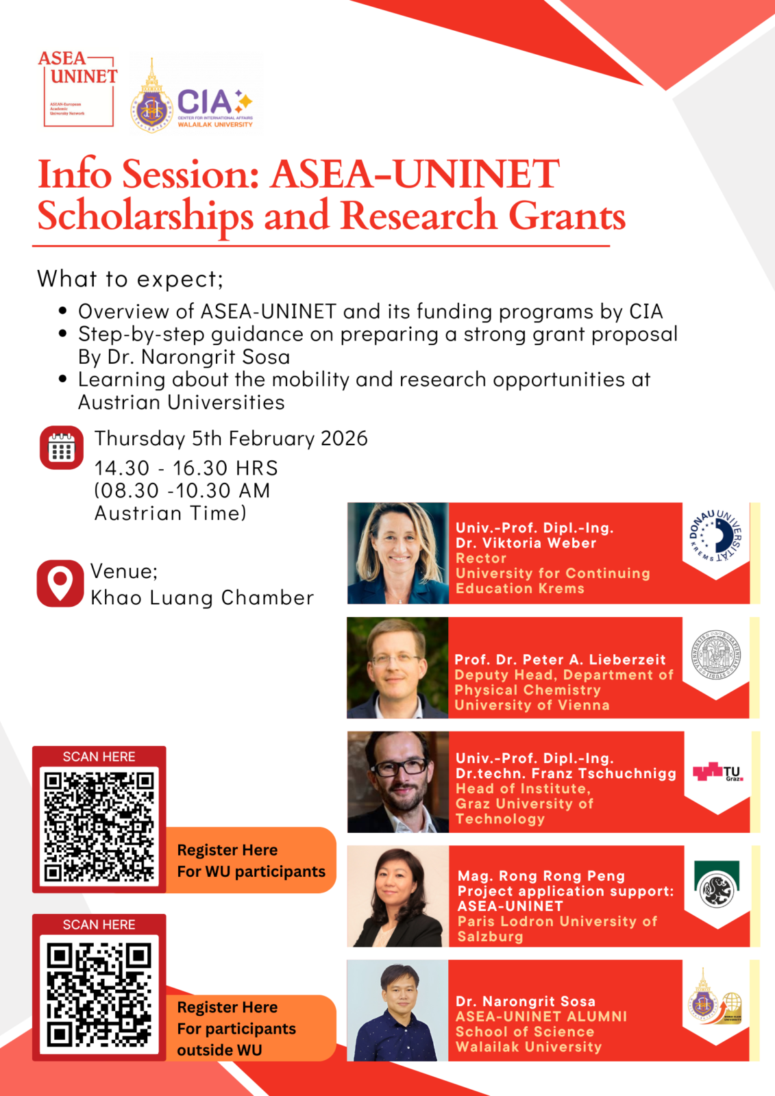 ภายในงานได้รับเกียรติจากวิทยากรผู้ทรงคุณวุฒิจากสถาบันอุดมศึกษาชั้นนำของสาธารณรัฐออสเตรีย (บรรยายออนไลน์) ได้แก่