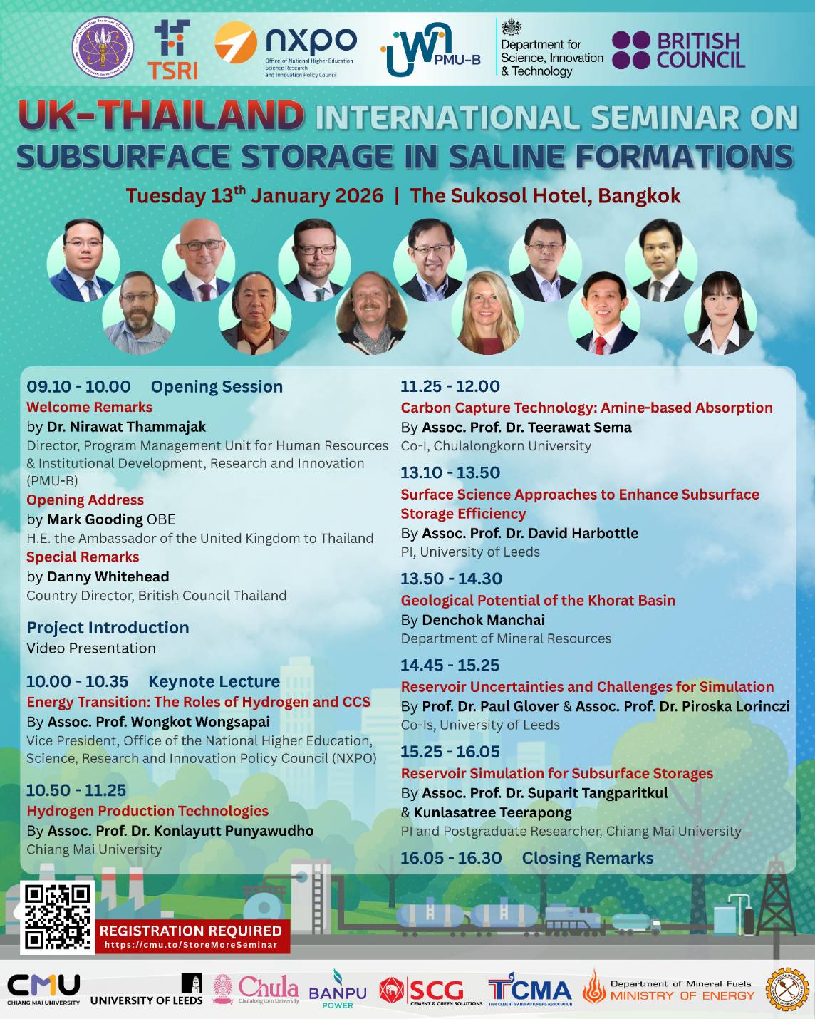 ✨Chiang Mai University, through the Chiang Mai Research Center for Carbon Capture and Storage (Chiang Mai CCS), in collaboration with the University of Leeds and partner institutions, cordially invites academics, researchers, industry professionals, students, government and private sector representatives, and all interested participants to join the UK–Thailand International Seminar on Subsurface Storages in Saline Formations.